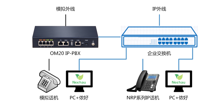 之前接触过一些解决方案,比如安装开源的电话系统软件,再另配电话交换机,复杂,而且出问题时候很难定位到底是软件还是交换机的问题,不好维护。